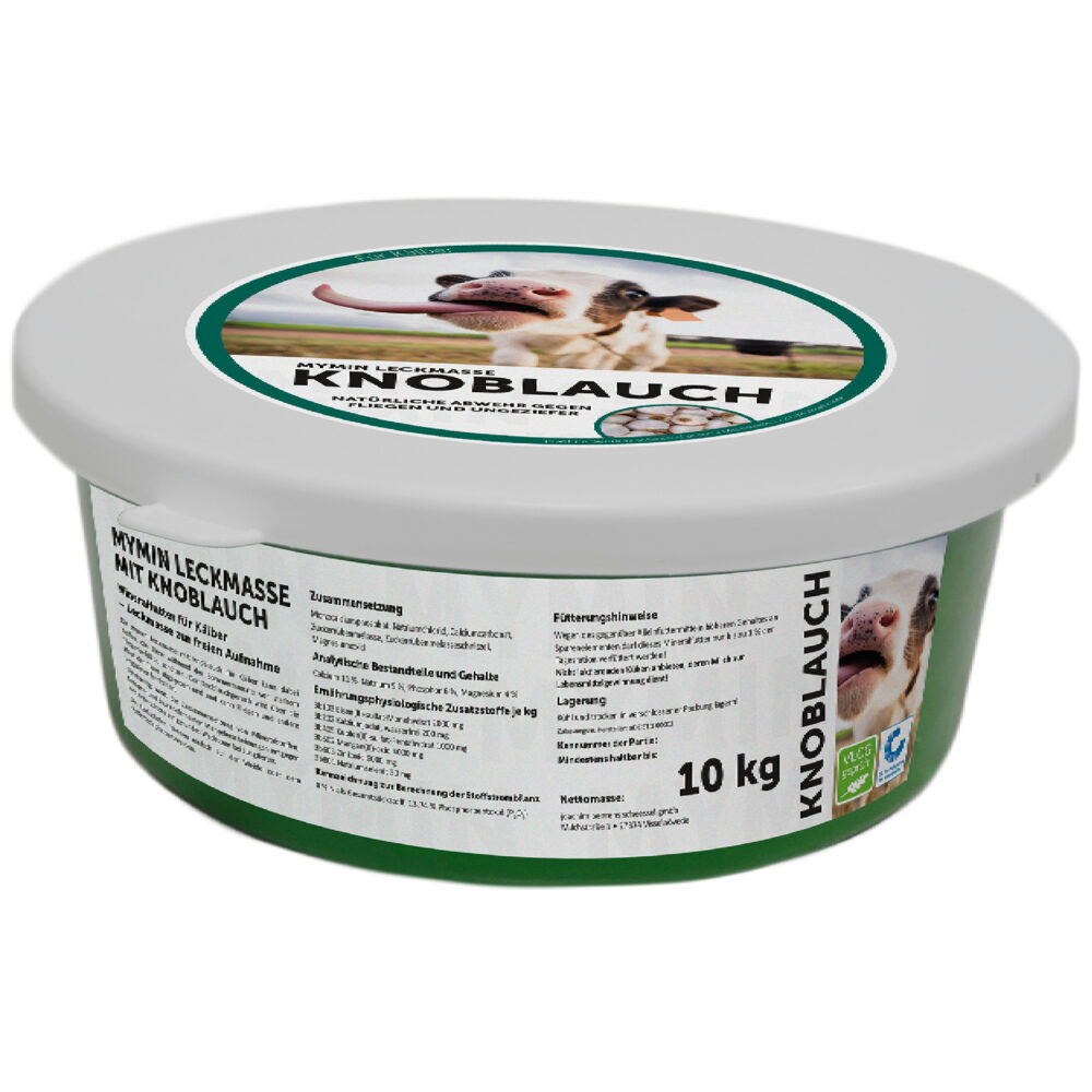 Die mymin Leckmasse mit Knoblauch wurde gezielt entwickelt, um vor starkem Fliegenbefall zu schützen. Der Knoblauchgeruch wird über die Hautporen der Tiere ausgeschieden und dient so zur Abwehr von Fliegen und Ungeziefer. Optimal zum Einsatz in den Frühjahr- und Sommermonaten.