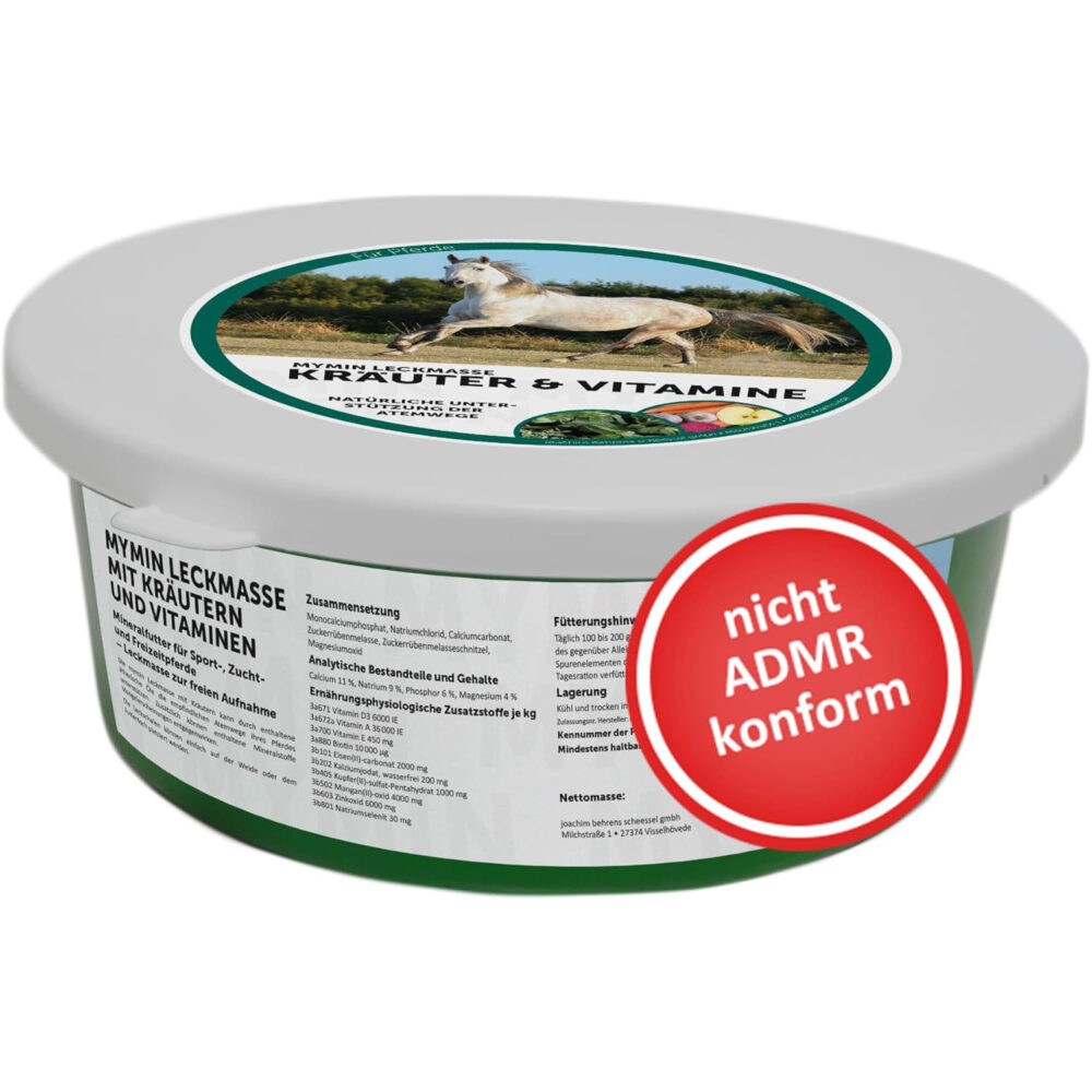 Die mymin Leckmasse mit Kräutern kann zur Verbesserung des Stallklimas beitragen und sorgt für eine ausgewogene Mineralstoff- und Vitaminversorgung zur langfristigen Erhaltung von Gesundheit und Leistungsfähigkeit deines Pferdes.