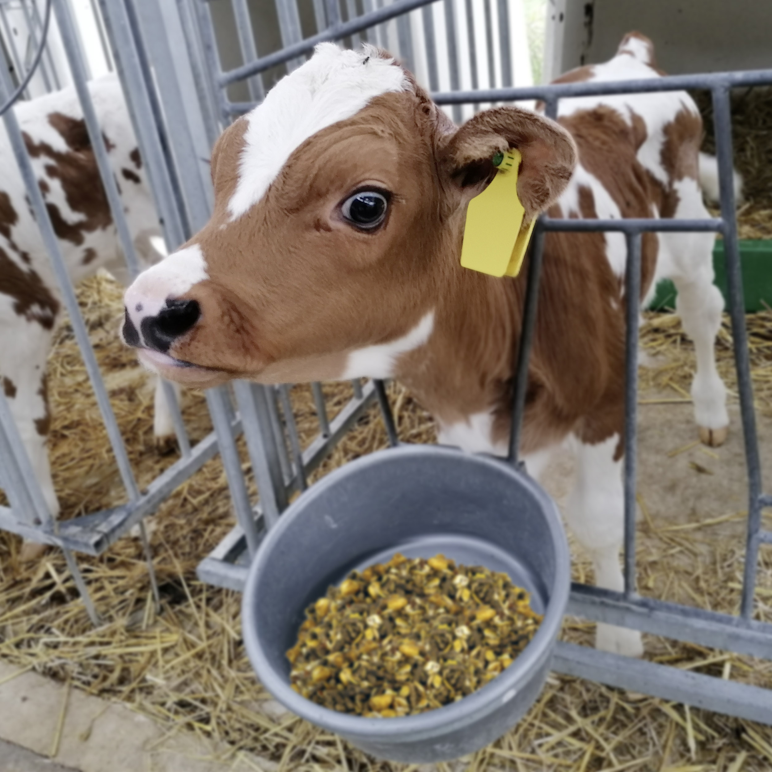 Die feinen Komponenten des Kälbermüsli kleben an der feuchten Nase des Kalbes, werden abgeleckt und bringen es spielerisch auf den Geschmack. Somit wird die natürliche Neugier des Tieres genutzt, um frühzeitig mit der Futteraufnahme zu beginnen. Diese Art der Beschäftigung mit dem Futter fördert nicht nur die Futteraufnahme, sondern auch die Entwicklung der Vormägen.