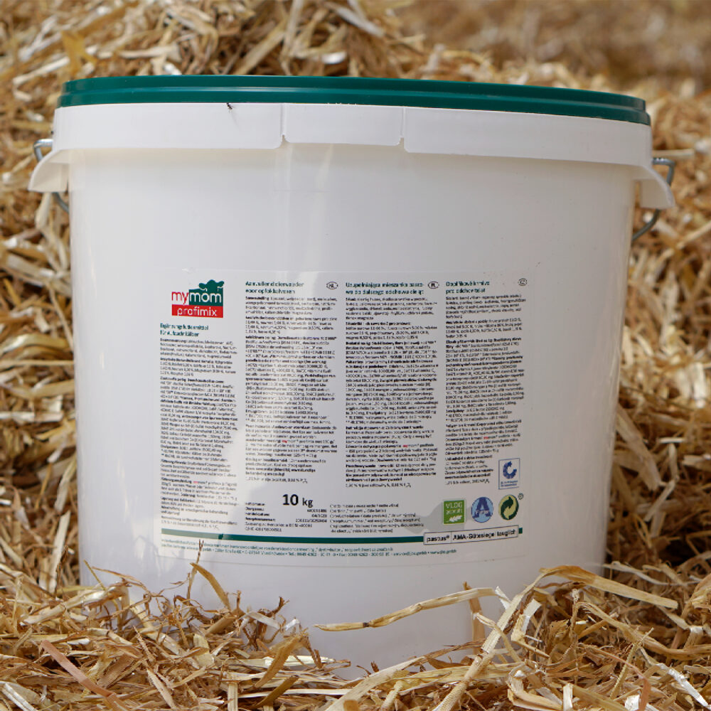 mymom profimix enthält ausgewählte Kälber Elektrolyte, die helfen, den Flüssigkeitshaushalt zu stabilisieren, und gleichzeitig Probiotika und schleimbildende Inhaltsstoffe, die die Darmflora stärken und die Darmschleimhaut vor Keimen schützen. Die Kombination mit milden Verdauungshilfen unterstützt den Organismus auch in Stressphasen, z. B. bei Futterumstellungen, Unwohlsein oder tierärztlichen Maßnahmen.