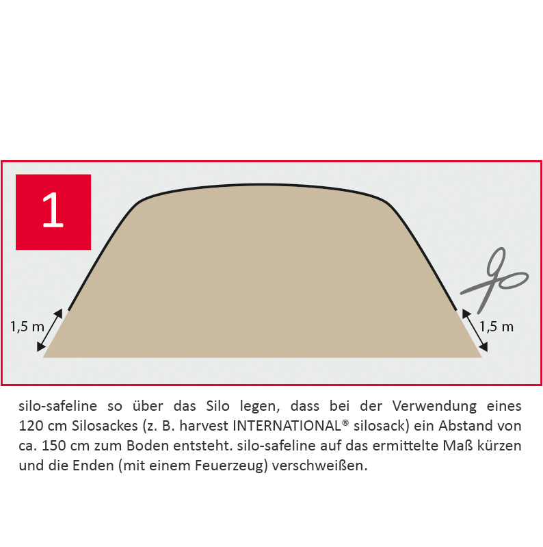 protec Safeline ist die ideale Ergänzung zur Sicherung von Silagehaufen mit Silosäcken. Das Set ist einfach zu bedienen und flexibel anpassbar an jede Haufengröße und jeden Silosacktyp mit Trageschlaufe.