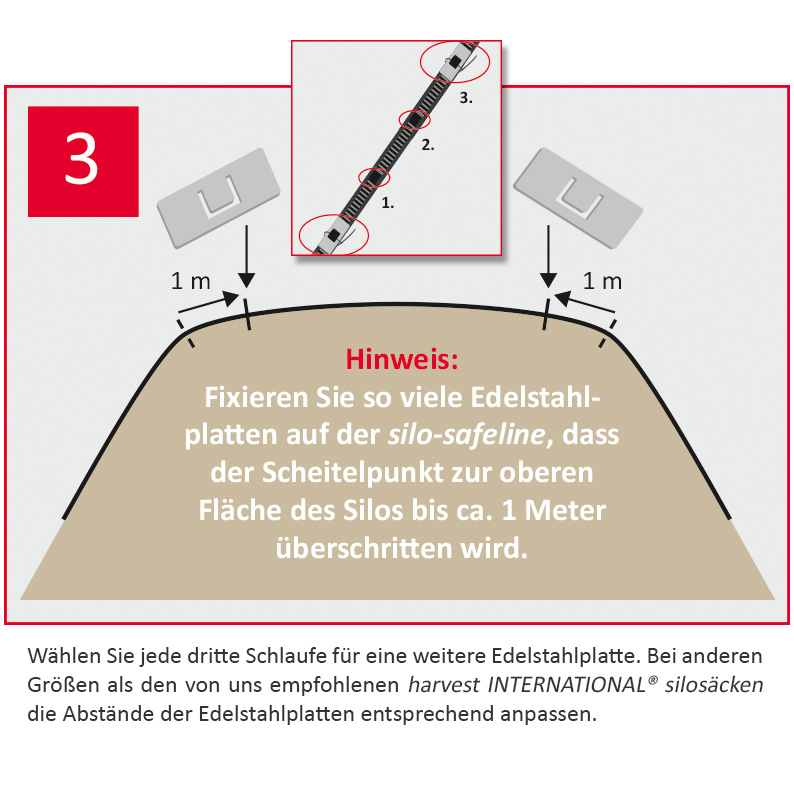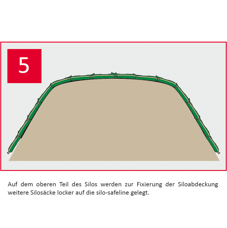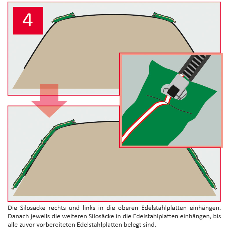 Das Gurtsystem ermöglicht eine einfache und schnelle Sicherung der Siloabdeckung und gewährleistet die Unterteilung des Silagehaufens in isolierte Abschnitte, so dass bei Beschädigung der Folie Außenluft nicht mehr unter die ganze Folie ziehen kann.