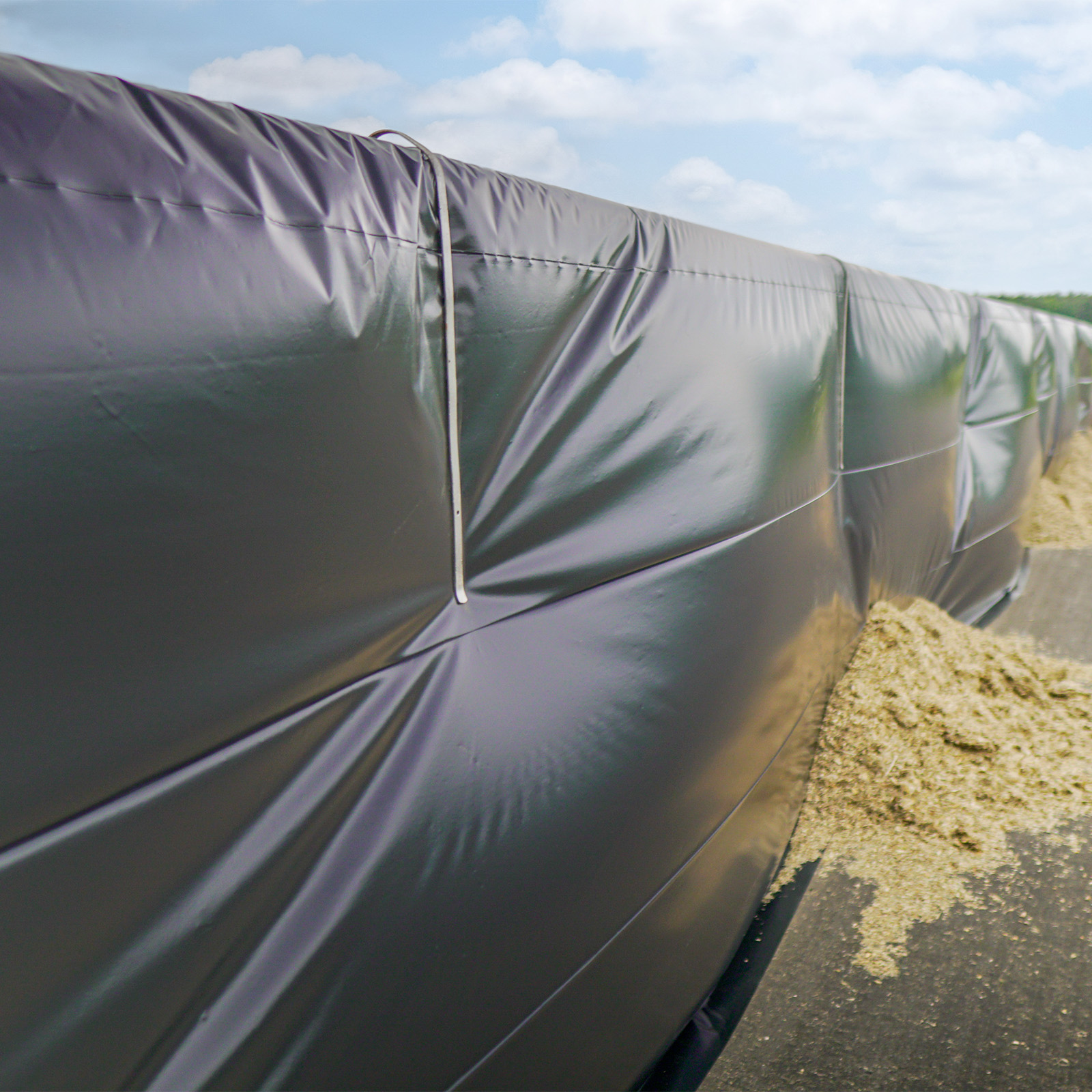 Die protec Seitenwandfolie bietet eine effektive Lösung, um die Silagequalität auf ganzer Linie zu sichern. Mit einer Stärke von 120 μ ist die Folie besonders widerstandsfähig, wodurch sie sich auch bei stärkerem Druck der Silagemasse nicht verzieht oder reißt. Außerdem sorgt sie dafür, dass keine Luft und Feuchtigkeit zwischen der Silowand und der Silage eindringen können. Damit wird unerwünschte Gärung in Randbereichen vermieden, was den Nährwert des Futters erhält und den hygienischen Zustand der gesamten Silage verbessert.