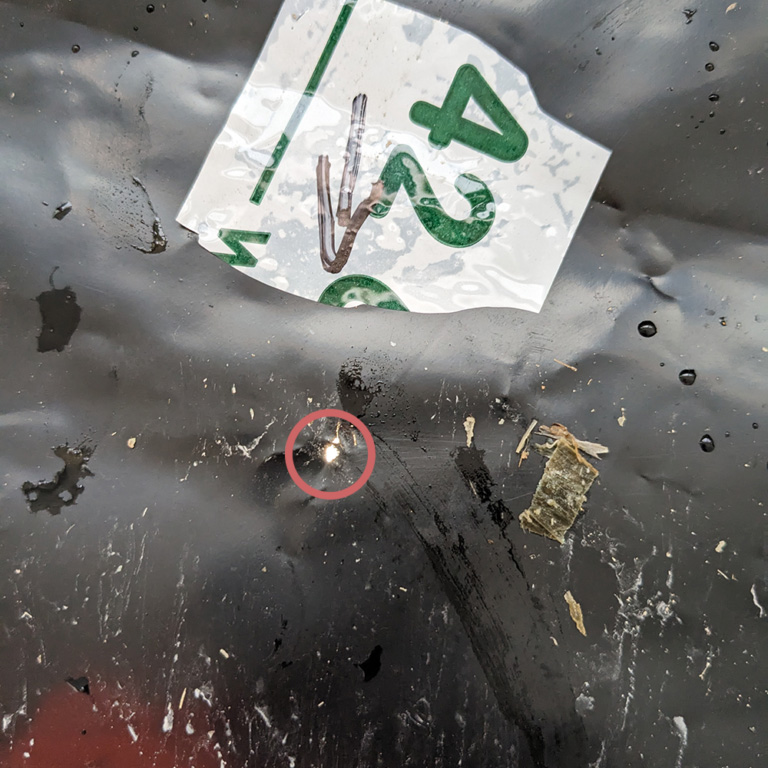 Die individuellen Gegebenheiten eines jeden Betriebes liefern uns die besten Beispiele. Katzen, Nager und Vögel sind Teil der natürlichen Landschaft. Aber sie stellen immer wieder eine Herausforderung für den Schutz von Silohaufen dar und das Risiko von Schäden in der Silofolie steigt mit ihrer Anzahl. Sie sind verantwortlich für kleinste Löcher, die durch die spitzen Krallen oder Schnäbel der Vögel verursacht werden (1). Mit bloßem Auge sind die Löcher kaum zu erkennen, erst auf dem Lichttisch findet man sie. Selbst bei 2 Folien plus doppeltem Schutzgitter wird die Hauptfolie stark beschädigt (2). Sogar die Unterzugfolie hat ein paar Löcher (3). Die Wiederverwendung der Folien von vorherigen Silos als zweite oder dritte Schicht ist ebenfalls keine Garantie dafür, dass die Folien heil bleiben.