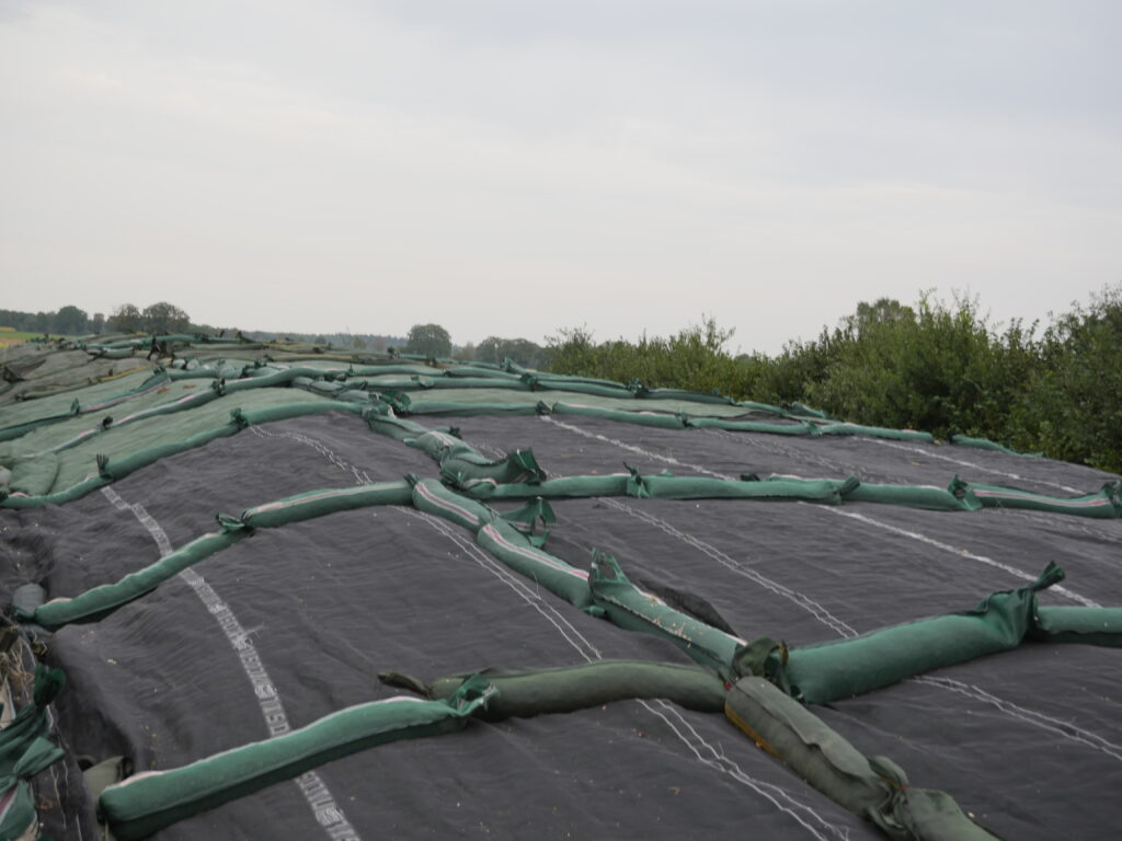 Querbarrieren können auch nach der Ernte noch problemlos auf das Silo gelegt werden. Je sorgfältiger man sich bei der Ernte und Abdeckung des Silos bemüht, desto weniger Möglichkeit haben unerwünschte Hefen, Pilze und Bakterien, sich zu entwickeln. Das kommt nicht nur der Tiergesundheit zugute, sondern erleichtert auch demjenigen, der die Silage entnimmt, erheblich die Arbeit. Schließlich wird das Futter nicht angebaut, um die Silage später zu entsorgen – je weniger Verderb, desto besser!
