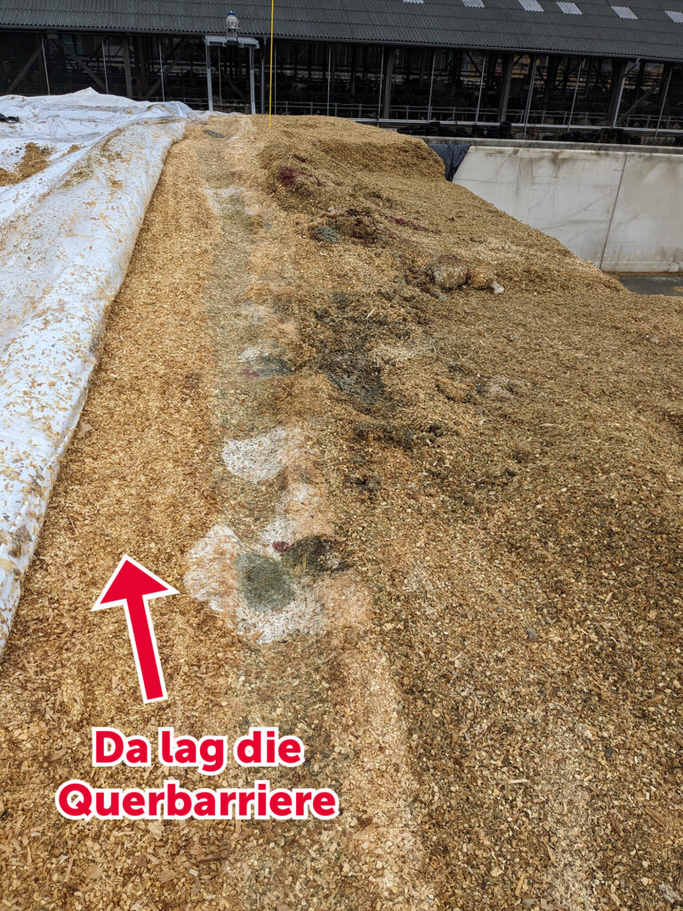 Die Querbarrieren werden in regelmäßigen Abständen (z. B. alle 3 – 5 Meter) quer über das Silo gelegt. Wichtig sind sie vor allem da, wo sich Silofolie oder Schutzgitter überlappen.